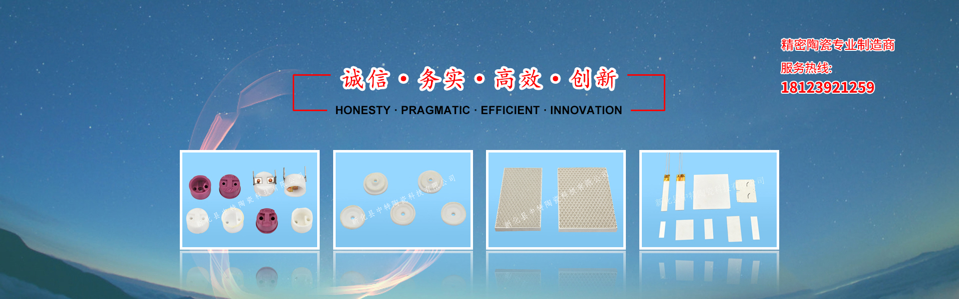 自創辦以來,本公司堅持自主創新,憑技術力量雄厚、設備精良、工藝先進,一直致力精密陶瓷領域的研究、開發和生產。已通過ISO9001質量管理體系認證,擁有完全自主知識產權的發明專利九項。專業生產各種規格的氧化鋁瓷、滑石瓷、增韌瓷、氧化鋯、氮化鋁等精密陶瓷。主要產品有:溫控器陶瓷、蜂窩陶瓷、氧化鋁基片、陶瓷金屬化、陶瓷軸、氧化鋯陶瓷、發熱陶瓷、異型結構陶瓷等多種類,產品已廣泛應用于微電子、光通訊、生物、醫學、海洋、環保、機械、電工、鐘表、新能源等領域......